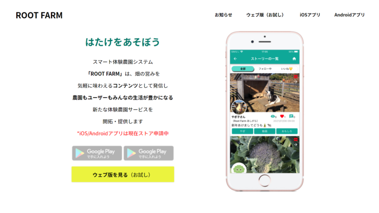自社開発のスマート体験農園システムにより、会員はいつでもどこからでも自分の野菜栽培や、農の営みを楽しめます。